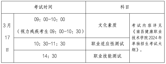 2、视力残疾学生现场资格审核及申请合理便利。考生本人需于3月8日上午9点至下午5点到学校(南昌健康职业技术学院翠岩路466号办公楼一楼102室)参加现场资格审核,并将相关证明材料交至现场工作人员。