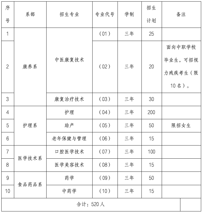 3、若考生出现同分现象时,报考中医康复技术(02)专业按职业技能测试、语文、数学分数依次排名。其他专业按照语文、数学、职业适应性测试分数依次排名。